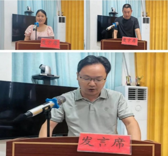 述职现场,校(园)长们化身教育征程的“领航讲述者”,以铿锵话语回溯学期点滴。张家小学校长张洁加强学校教师队伍建设,注重学生综合素质培养;树下小学校长李志鑫聚焦教师教研引领,深化学生法治教育;湾埠小学校长陈志进立足乡村资源,将乡土文化融入美术、劳动、综合实践等课程;韩湾小学校长韩峰以安全为底线,以质量为核心,以特色为亮点开展各项工作;同德小学校长黎银磉以宣传中华传统美德为重点,落实“一校一品”工作;蔡家小学校长徐锦权充分发挥音、体、美教育特点,培养学生审美意识,为学生发展奠定良好基础。