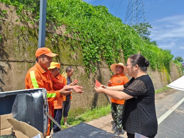 为切实做好高温天气下职工劳动保护工作,近日,上饶市广丰公路中心组织开展了夏日送清凉慰问活动,活动现场,工会工作人员将藿香正气水、西瓜、矿泉水等防暑用品一一送到工人手中,并反复叮嘱:在高温天气作业时要提高自我防护意识,科学安排工作时间,在切实保障自身安全的基础上完成日常养护作业。工人们接过清凉物资,脸上洋溢着幸福的笑容,感动地说道:工会给我们送来这么多防暑用品,真是太贴心了,有了组织的关心,我们干劲儿更足了!