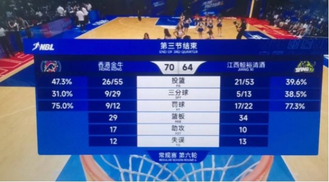 易边再战,香港金牛调整状态,詹姆斯连续命中三记三分,而江西鲸裕清酒则频频出现失误,香港金牛抓住机会将比分分差扩大至两位数。关键时刻,阿普肖扛起进攻大旗,在篮下连续单打成功,持续缩小比分差距。第三节战罢,江西鲸裕清酒以64比70暂时落后。