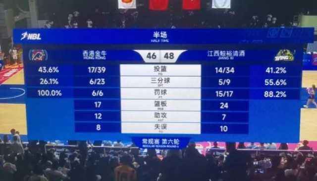 次节比赛继续进行,王翊雄命中三分空心入网,随后香港金牛也以一记三分予以回应。布里斯科紧接着开启个人秀,凭借三记三分和两记上篮帮助球队将比分反超,荣家浩也不甘示弱,先是完成空接二加一,随后又远投命中三分。面对局势变化,香港金牛紧急调整策略,且收到显著效果,通过连续得分将分差缩小。半场结束,江西鲸裕清酒以48比46暂时领先香港金牛。