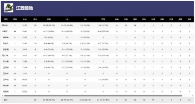 本场比赛外援方面:阿普肖拿下28分14篮板的两双数据,布里斯科拿下12分8助攻的好数据,哈特拿下19分5篮板的数据。国内球员方面:刘俊文拿下14分3篮板2助攻的数据,赵晏满拿下8分4篮板2助攻的好数据,刘力鹏、王翊雄分别拿下7分、6分的好数据。