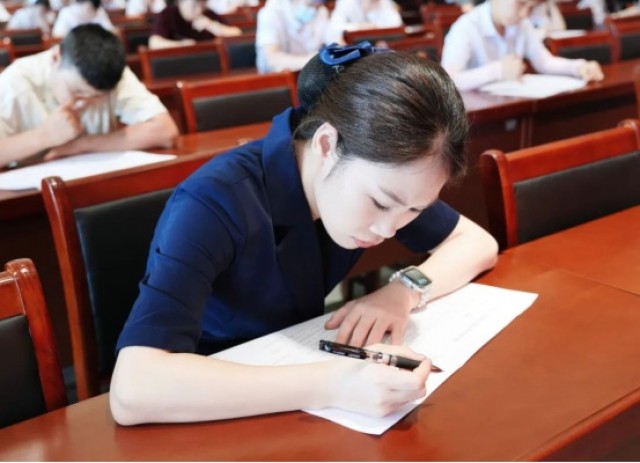 本次竞赛以医院理念文化、制度文化、形象文化、物质文化为核心内容,精心设计“笔试选拔+现场答题”的双层赛制,确保全员覆盖、深度参与。全院临床、医技、护理、行政后勤等21个科室积极响应,以科室为单元组建战队。笔试环节中,选手们全神贯注、笔尖疾驰,在闭卷答题中展开激烈角逐。经过1小时的紧张而有序的考试,6支队伍凭借着扎实的理论功底脱颖而出,成功晋级决赛,为后续对决蓄势待发。