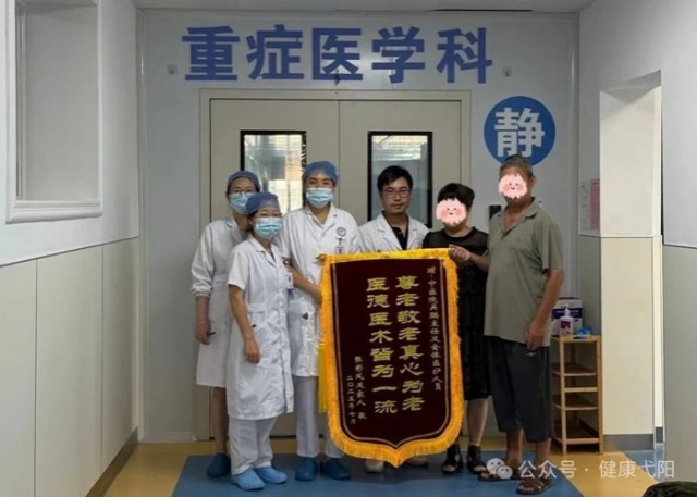 101岁的谢爷爷,因突发上腹部疼痛,汗出,伴恶心呕吐,以 “急性胰腺炎” 收入弋阳县中医院重症医学科。经检查,老人患有急性胆源性胰腺炎、梗阻性黄疸、胸腔积液、2度房室传导阻滞等多种基础疾病。“百岁高龄,涉及多个脏器、诊治复杂。”重症医学科吴聪主任介绍道。科室迅速组织多学科会诊,制定了个性化治疗方案,采用中西医结合疗法:一方面运用西医减轻疼痛、改善体液循环;另一方面辅以中药、中医特色护理技术有效缓解症状。从完善检查到制定个性化方案,从密切监测生命体征到关注细微不适,医护人员全程用心守护,经过治疗,老人病情好转出院,家属为表感激,送来 “白衣天使情系病患,待患如亲关怀备至”的锦旗,感谢医护人员的精心救治和细心照护。