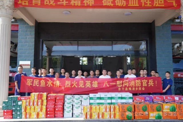 “八一”建军节,这一承载着军人荣耀与奉献的特殊日子,如同一束温暖而明亮的光,照亮了每一个心怀敬意之人的心房。为大力弘扬拥军优属的优良传统,向奋战在抢险救援一线的消防官兵表达最崇高的敬意和最深切的关怀,7月31日上午,阳光正好,余干县梅港乡商会精心组织了一场意义非凡的“八一”慰问活动。