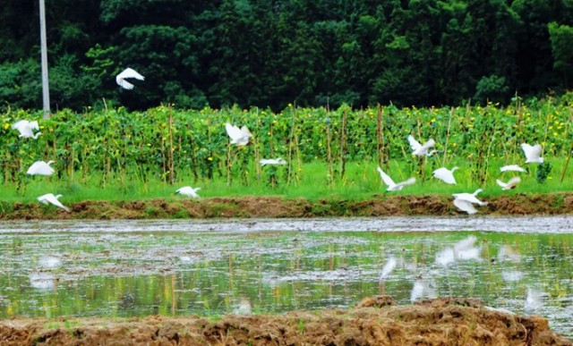 近日,德兴市新岗山镇西坑村的水田迎来一群“白衣仙子”——白鹭在此栖息安家,它们或悠然觅食,或振翅高飞,洁白的羽翼与绿野青山相映成趣,宛如童话场景,吸引众多村民与游客驻足观赏。