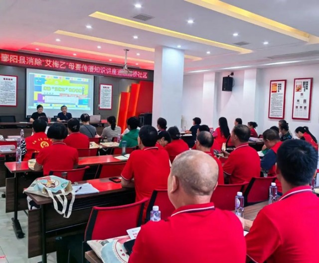 在知识讲解环节,县妇幼保健院保健科科长王晓红专家借助PPT和视频,深入浅出地讲解了“艾梅乙”母婴传播的途径。艾滋病可通过胎盘、分娩、母乳喂养传播;梅毒可通过胎盘传给胎儿;乙肝主要经母婴垂直传播。同时,王晓红科长还阐述了母婴传播的严重危害,如导致胎儿早产、流产、死胎、新生儿感染等,并介绍了鄱阳县目前“艾梅乙”母婴传播的发病率、防控难点等现状。