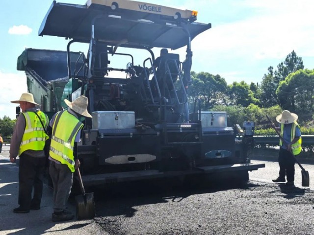 针对这两个路段路面状况,信州公路中心制定了精准修复方案,即将原有沥青路面的裂缝、坑槽等病害进行彻底处理,对损坏的水泥稳定碎石基层进行修补加固,最后重新摊铺沥青混凝土面层,确保路面整体强度和耐久性。施工过程中严格遵循《公路沥青路面养护技术规范》要求,实施全过程质量管控。