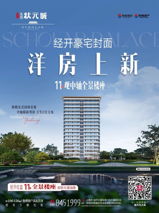 近日,上饶经开区备受瞩目的封面豪宅——友邦状元城传来重磅消息,其11#央景楼座即将震撼加推,建面约110 -130㎡的高拓洋房目前正火热预约中,这一消息犹如一颗投入楼市湖面的巨石,激起层层涟漪。