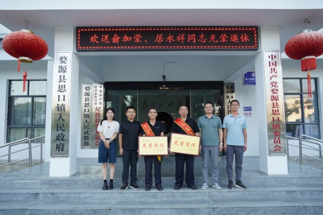 会议最后,程志安、汪炜爔为两位退休干部颁发光荣退休纪念牌,全体参会人员合影留念,座谈会在热烈的掌声中圆满结束。此次座谈会既体现了组织对退休干部的关怀,也激励在职干部职工接续奋斗,为思口镇高质量发展贡献力量。(程子倍)