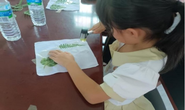 活动现场,村民亲手采摘时令植物,在教学中掌握拓印技巧,从挑选叶脉清晰的叶片,到调配天然固色剂,再到用锤子轻敲定格自然痕迹,每一步都能感受传统技艺的温度。