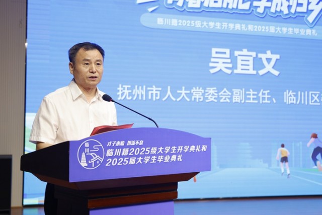 吴宜文在讲话中寄语广大学子,无论是即将进入大学,还是马上踏入社会,期待大家在追逐梦想的道路上,都能把握机遇、勇毅笃行。他表示,临川因人才而出彩。临川素有“才子之乡文化之邦”的美誉,历经千年孕育的临川文化是江西两大支柱文化之一,历史上涌现了一大批名仕俊杰。如今,临川是著名的教育之乡,每年从临川走向全国的学子“数不胜数”。大家勤勉励志、自强不息,在学业追求卓越的同时,用实际行动支持家乡发展,家乡人民为你们骄傲、给你们点赞。青春要奋斗才精彩。今年是中国人民抗日战争胜利80周年,也是“十四五”规划的收官之年,大家与伟大的时代同向同行,是强国建设、民族复兴伟大事业的接班人,要牢记习近平总书记的寄语,“矢志追求更有高度、更有境界、更有品位的人生”,在火热的青春中放飞人生梦想,在奋斗的青春中成就事业华章。未来靠大家来添彩。当前的临川,综合实力显著增强,产业发展势头强劲,创新动能加快释放,开放水平持续提升,这些既是临川今后再上台阶的坚实基础,也为广大人才施展才华提供了良好平台。特别是我们全力唱响“才子来临·川流不息”人才工作品牌,完善“临川五优·人才无忧”服务体系,在全社会营造了尊才爱才敬才的浓厚氛围。热忱邀请广大英才与家乡结成“命运共同体”,在临川的发展机遇里“长风破浪会有时,直挂云帆济沧海”。衷心希望大家能始终心系家乡、时常回家看看,为家乡发展多建言献策、牵线搭桥,积极引进优强项目、引导优秀人才、引荐优质院所汇聚临川,把更多优质资源带回临川。区委、区政府真挚承诺,如果大家选择回家乡发展,一定给予最佳礼遇、实施最好政策、提供最优服务,让大家在临川干事有舞台、发展有空间。