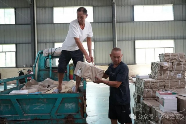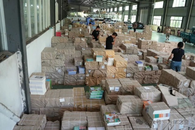 走进仓库,可以看到小学、初中、高中教材按学段、学科分区码放,分类标签清晰明了;分拣员手持学校订单清单,逐本核对教材的年级、学科与数量,确认无误后交由打包人员按“一校一包、一班一档”封装,工作人员每一个动作都快而不乱,井然有序。“我们从25号正式启动教材发放工作,每天在岗10小时,就是要抢在开学前把课本送到每所学校。”万年新华书店综合管理部负责人李敬涛介绍,此次发放的教材覆盖全学段教学需求,将精准配送至全县51所中小学。