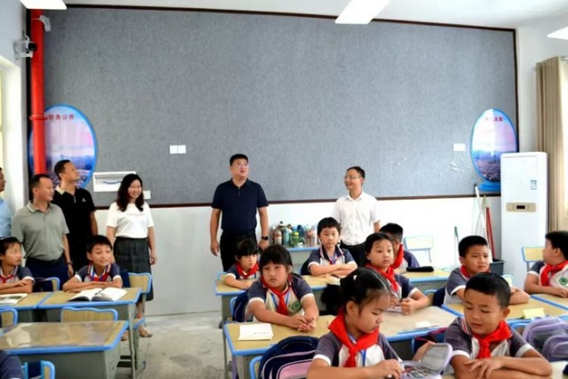 仪式后,校长赵金凤引导嘉宾参观梦想课堂、书法室、科学实验室等功能教室及食堂、教室。领导们对现代化办学条件给予高度评价,戴有彬副县长详细了解学校规模、师资情况,并针对校门口交通拥堵问题提出可行性建议。