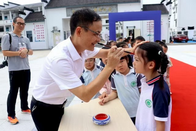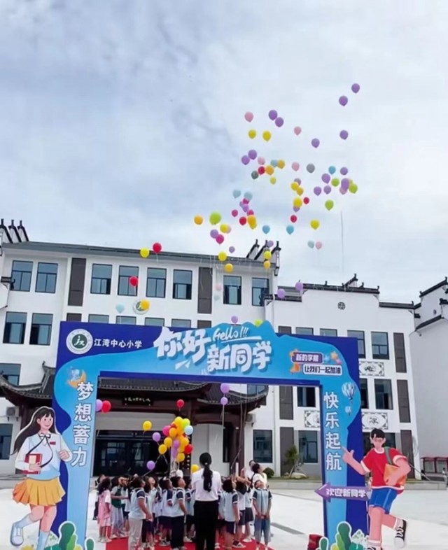 9月1日,婺源县江湾镇中心小学举行“新校址·新启程”入校仪式暨一年级新生入学礼,学校整体搬迁项目总指挥长、婺源县人民政府副县长戴有彬,项目副指挥长、县委教体工委书记、县教体局局长郎建平,项目副指挥长、县农业农村局局长余新丁,以及江湾镇镇长余文飞、江湾村村委会书记吴建强等嘉宾与全校师生共同见证这一历史时刻。