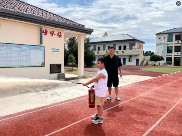 随后,校长黄长江现场示范灭火器操作步骤,从提器、拔销、握管到按压,动作规范清晰。学生代表在教师指导下进行实操练习,切实掌握灭火技能。演练结束后,安全主任黄诗棋总结活动意义,强调消防安全重要性,并教育学生远离火灾隐患,共筑平安校园。