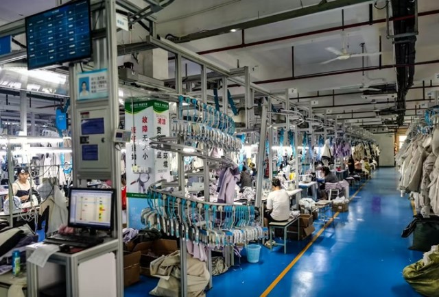 在江西乐安县三连制衣有限公司宽敞明亮的现代化车间内,智能吊挂系统有序运转,工人正在操作自动模板机,电子屏幕上实时显示生产数据。该企业自2010年落户乐安以来,持续加大技改投入,推动数字化升级,积极联动 5G 赋能云数字化管理,安装了 15 条智能吊挂系统和自动模板机,为企业插上了腾飞的翅膀,实现产能与效益双提升,凭借智能化管理成果获评“省级数字化转型标杆数字工厂”称号。(乐安县政府办王国庆 摄)