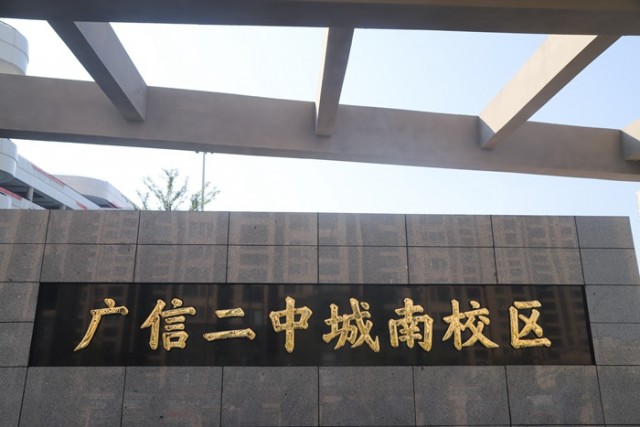 广信二中城南校区位于江南新区,采取“一校两址”形式,与广信区第九中学同址办学。广信二中城南校区的成立是我区教育改革创新的一项重要举措,是加快实施县域高中振兴行动计划的有力实践。该校由广信二中管理团队负责日常运行管理,选派广信二中优质师资开展日常教学,今年秋季共安排400多名高一年级新生在此就读。