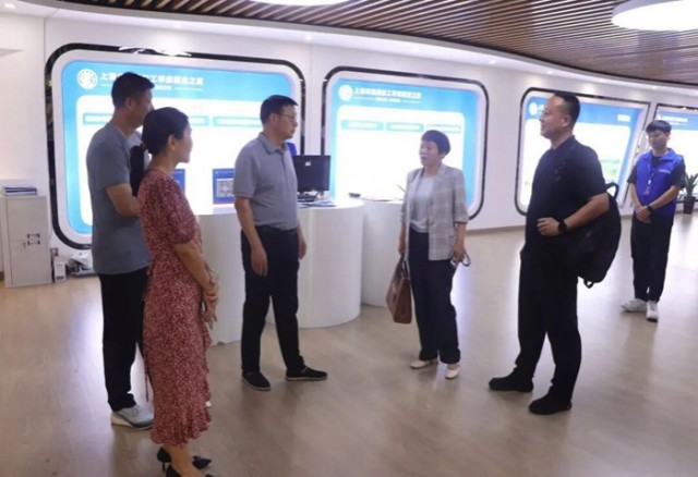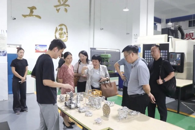 在程双、刘秀林陪同下,郑晓珍一行参观了学校行政楼大厅、沙盘、校史展厅、就业之家及制造学部数控机床实训基地,对上饶高级技工学校的校园规划、办学成果和实训设施称赞有加。