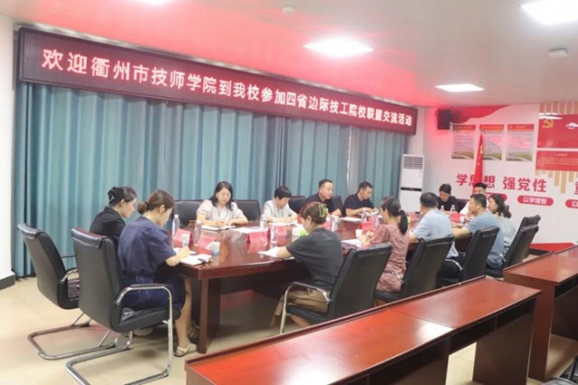 9月24日下午,衢州市技师学院党委书记郑晓珍一行前往上饶高级技工学校,参加浙闽赣皖“四省边际技工院校联盟”交流活动,上饶高级技工学校党委书记程双,党委副书记、校长刘秀林热情接待并出席座谈会。