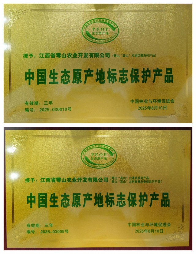 近日,中国林业与环境促进会生态原产地工作委员会发布2025年第07号生态原产地保护产品评定名单。江西省雩山农业开发有限公司申报的雩山(高山)山茶油、雩山古树香榧、雩山沙地红薯三大系列产品全部入选,标志着乐安县在推动生态产品价值实现、建设绿色农业品牌方面取得重要突破。