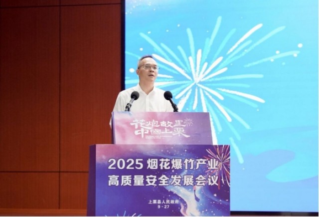 “萍乡有四张名片,而‘花炮故里’这张,藏着千年技艺的传承与创新!”萍乡市委常委、常务副市长邱啟旻的致辞,将现场目光拉向产业的“根与魂”。他细数萍乡“工运摇篮”“户外天堂”“中国辣都”“花炮故里”四张名片,着重提及上栗花炮从唐宋“纸爆”技艺到如今“亿级产值”的跨越:“从北京奥运会的璀璨焰火,到卡塔尔世界杯的夜空奇观,上栗花炮早已走出国门,成为承载中国文化的‘流动名片’。”他坦言,传统产业的生命力在于与时俱进,高危行业的生命线在于安全发展,他恳请与会专家多提真知灼见,助力萍乡加快构建现代烟花爆竹产业体系,让这束“千年焰火”在高质量发展征程上点亮更广阔的天空。