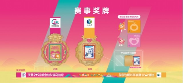 今年仙马的完赛奖牌在设计上精妙融合文化与运动元素。正面以象征爱情的方胜纹为底,搭配吉祥物奔跑形态,呼应“为爱奔跑,为甜蜜而来”的赛事主题,中间特别设置可旋转部件,带来独特互动体验。背面镶嵌七夕主题邮票,既承载运动拼搏精神,又将爱情的浪漫、仙女下凡地的传统故事完美结合,极具纪念与收藏价值。