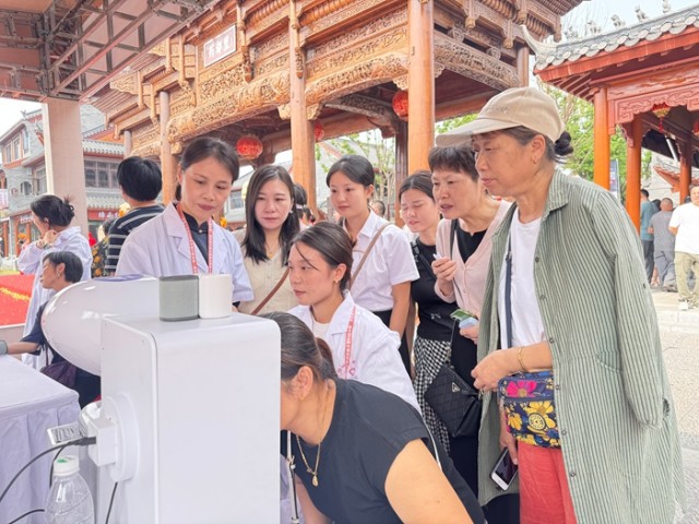 与往年不同,今年的活动创新性增设AI中医诊疗体验区,成为现场最受关注的亮点。中国中医科学院医学实验中心、江西中医药大学陈日新教授团队及南京大经中医药信息技术有限公司联合参展,携三部九候康养机器人、儿童用中医四诊机器人、热敏灸机器人、舌面诊仪等多款中医AI智能设备集中亮相,吸引众多市民驻足体验。展区前早早排起长队,气氛热烈。“AI检测说我是痰湿体质,容易疲劳,这和李教授的诊断一模一样!”刚体验完的市民陈女士拿着报告感慨道。为让科技体验更接地气,现场还配备了专业中医师与健康顾问,用通俗语言解读体质类型、健康风险,并结合AI数据给出食疗、运动等个性化建议。这种“名老中医辨证+AI精准检测”的模式,既保留了中医辨证施治的精髓,又借助科技提升了诊疗效率,让群众直观感受到中医药智能化的便捷与精准。