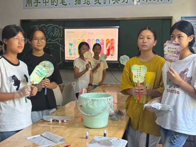 一把素扇,一方天地;几缕漆色,万般风情。为传承传统工艺之美,丰富校园文化生活,弋阳县漆工中学美术社团近日开展了一场别开生面的非遗漆扇制作体验活动,让同学们在笔墨与漆彩的碰撞中,感受非遗文化的独特魅力。本次活动由蒋婉盈老师执教指导。