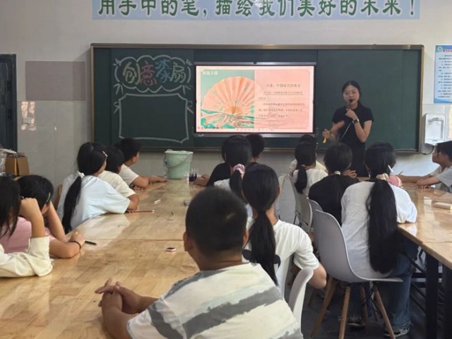 蒋老师向同学们详细讲解了漆扇的历史渊源、制作工艺与配色技巧,从素扇打磨、底漆涂抹,到纹样设计、色彩晕染,每一个步骤都蕴含着传统工艺的匠心。同学们听得专注,不时举手提问,对这门古老技艺充满了好奇与期待。