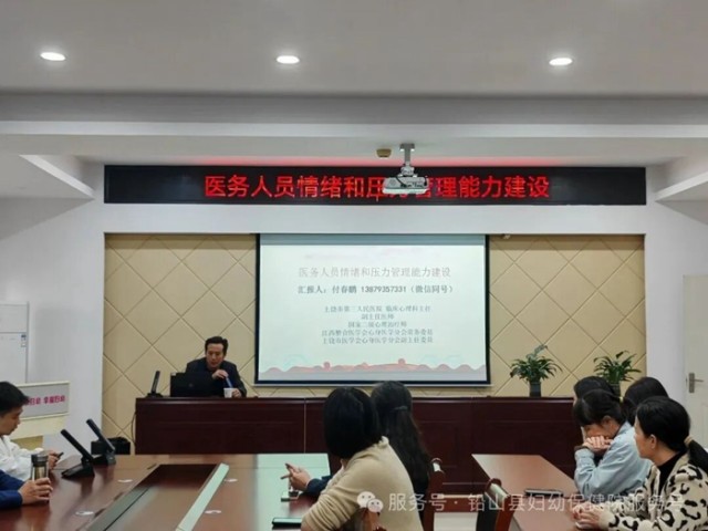 为进一步关爱医务人员身心健康,提升职工心理调适能力与自我关怀意识,营造温暖、支持的工作氛围,10月22日,铅山县妇幼保健院特邀上饶市第三人民医院临床心理科主任付春鹏开展以《医务人员情绪和压力管理能力建设》为主题的医务人员自我关怀与压力调适心理讲座,现场气氛活跃,反响热烈。