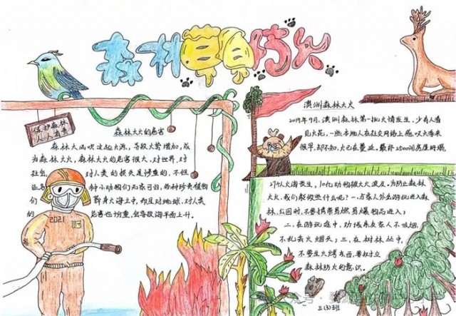 课余时间同学们精心制作森林防火宣传手抄报,深刻认识森林防火的重要性,并表示以后不仅自己不会到林区玩火,还会提醒身边的人注意防火,共同提高大家的森林防火意识。