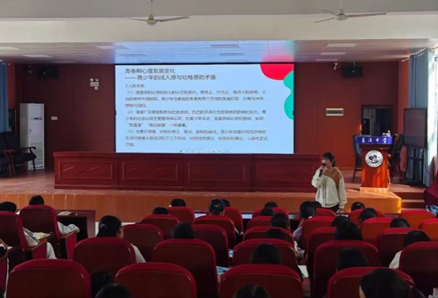 青春,是一场美好的蜕变。为引导九年级女生们坦然迎接生命中的重要时期,扫除成长路上的迷茫,弋阳县葛溪中学举办了一场温馨而专业的“迎接青春期,成长不迷茫”心理讲座,主讲人为徐逸然副书记,为花季少女们的健康成长保驾护航。