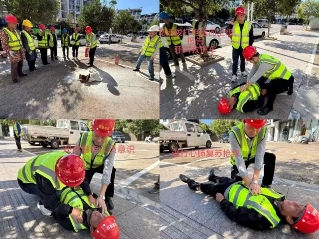 10月27日,婺源县城投市政工程有限公司组织各施工班组开展消防与触电急救专项演练,以实战化训练筑牢安全生产“防护网”,切实提升施工环节应急处置能力,保障生产安全稳定。