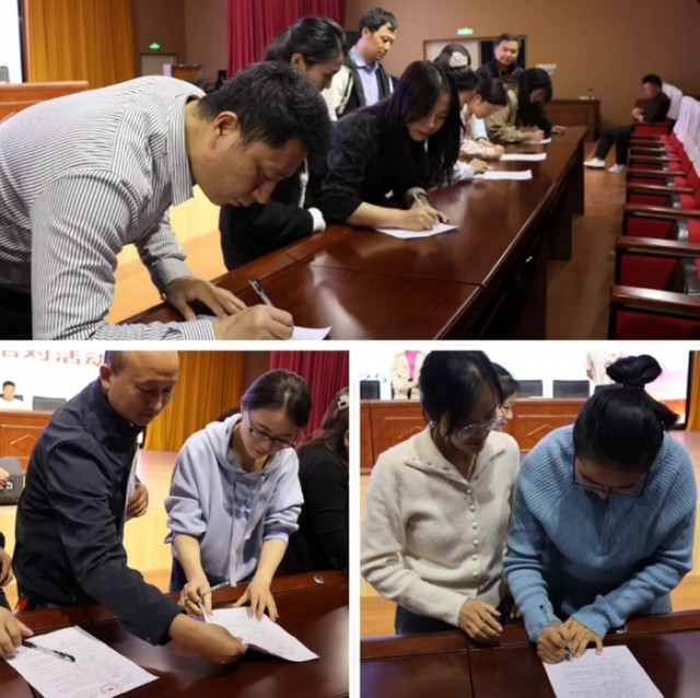 蓝方代表余佩涵老师承诺,将以“传帮带”为己任,分享经验,助力青年教师成长。青方代表姚慧老师表示,将主动求教,提升教学技能,争取早日成为优秀教育实践者。