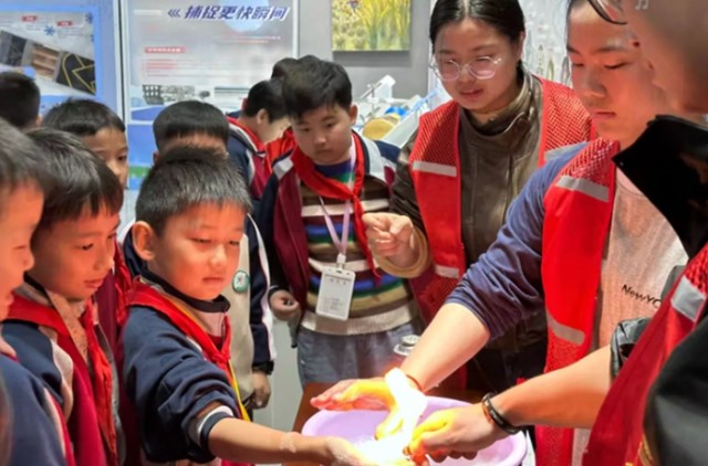在“美丽数学”展区,孩子们通过音乐与数学互动装置,在敲击“电子琴”感受旋律中,探寻节奏与数字的奇妙关联;巨型细胞模型前,他们仔细观察结构、阅读展板文字,不断提出好奇的问题;杂交水稻与转基因水稻对比展台,让他们了解了袁隆平院士的“禾下乘凉梦”,激发对生命科学的探索欲。“掌中生火”实验更让孩子们惊叹不已,在得知背后的科学原理后,纷纷感叹科学的神奇。