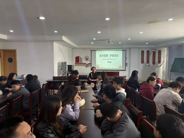 随后,刘卉老师款步上台,以专业且细致的讲解,传达了教育厅的相关文件精神,并对本次“师生结对帮扶”活动的背景进行了全面而深入的介绍。结对帮扶工作作为学校教育关爱行动的重要一环,每学期初,校方都会组织教师深入各个班级,通过与学生交流沟通、与家长密切联系、观察学生日常表现等多种方式,精准摸排出“特殊学生”群体。这些学生或许在学习上存在困难,需要额外的辅导与鼓励;或许在心理上较为脆弱,需要及时的疏导与关爱;或许在生活中面临一些实际问题,需要贴心的帮助与支持。