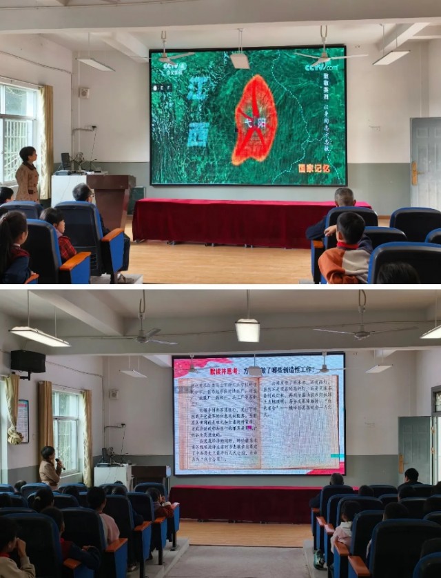 核心宣讲环节,关工委秘书长兼县关爱报告团副团长孙桂仙以《到处都是活跃跃的创造》为主题,从政治、军事、经济、民生四个维度,结合弋阳红色地标与方志敏革命实践,用珍贵史料和生动案例讲述方志敏的诸多“首创”故事,如创建赣东北苏维埃政权、组建红十军、首创游击战术、发行红色股票、修建列宁公园等,现场互动热烈,学生们听得入神。