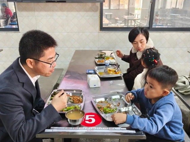 张福神通过实地查看、现场询问、展开座谈、随堂听课、食堂陪餐等方式了解学校的教育教学、校园环境、食堂管理等方面情况。