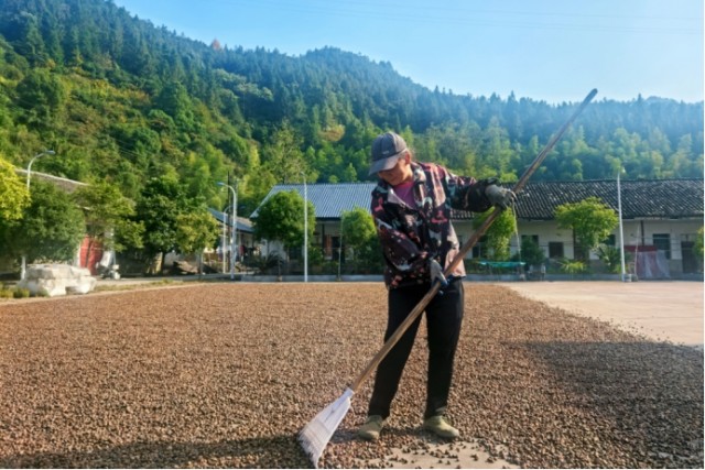 目前,加工厂年加工油茶籽超6万斤,带动周边油茶种植面积持续扩大,形成“种植——收购——加工——销售”一体化产业链,小小油茶果,真正成为群众增收的“黄金果”。