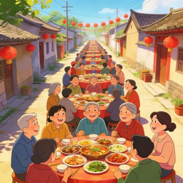 当长桌在灵山青翠的怀抱中蜿蜒铺开