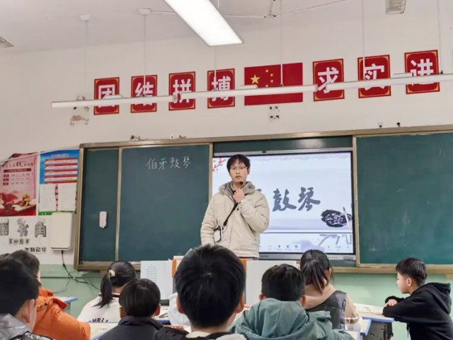 12月16日上午,吴世杰老师在六(5)班开展了《伯牙鼓琴》公开课。本次课程聚焦传统文化传承与文言文教学方法创新,吸引了校内教师观摩学习。课堂以师生互动为核心,通过多样化教学形式引导学生理解课文内涵。课堂互动氛围活跃,教师通过随机提问、小组展示等方式调动学生参与。学生主动举手回答问题。教学过程完整,教姿教态自然大方。特别的是吴老师与时俱进,运用了AI技术,给课堂注入了活力。以及吴老师让学生进行角色扮演,增加了课堂的趣味性,让课堂变得更加生动。