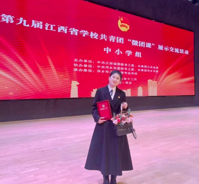 12月12日至13日,由中共江西省委教育工委、共青团江西省委联合主办的2025年第九届江西省学校共青团“微团课”展示交流活动(中小学组)在南昌圆满落幕。广丰区永丰中学柯宇昕老师凭借扎实的理论功底、创新的课程设计和富有感染力的现场展示,从全省21名优秀选手中脱颖而出,荣获中小学组一等奖,为广丰区共青团工作和青年教师队伍建设再添殊荣。