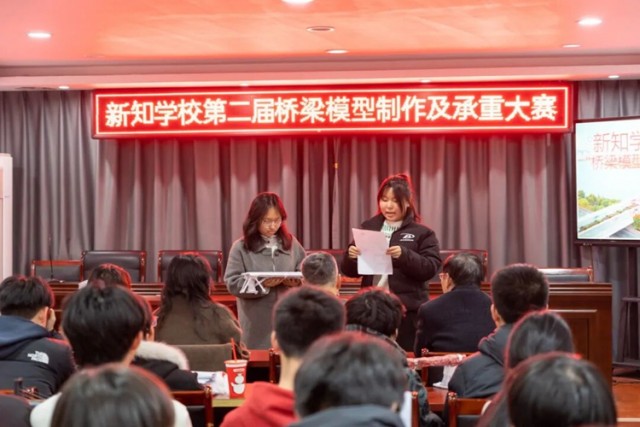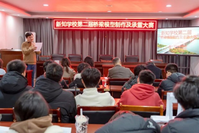 为深化科学教育与实践融合,激发学生创新潜能,上饶市私立新知学校第二届桥梁模型制作及承重大赛纸桥承重大赛精彩启幕。本次活动延续了“科学意识、科技思维、创新能力、团队协作”的精神,十九支参赛队伍以薄纸为材,以创新为魂,上演了一场“纸”与“力”的创意对决,用青春智慧搭建起连接创意与实践的梦想之桥。在校园内掀起了一股探索结构力学与工程设计的热潮。
