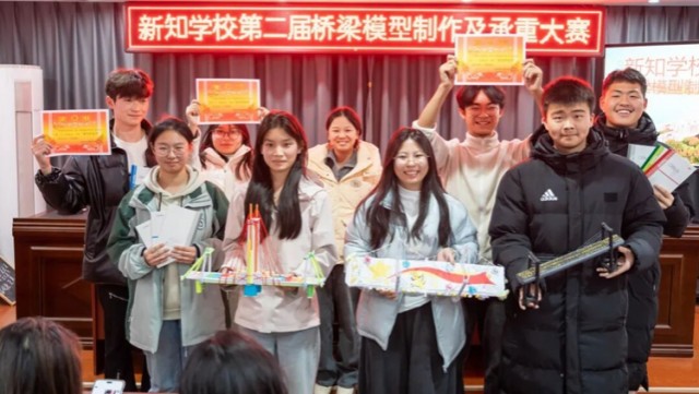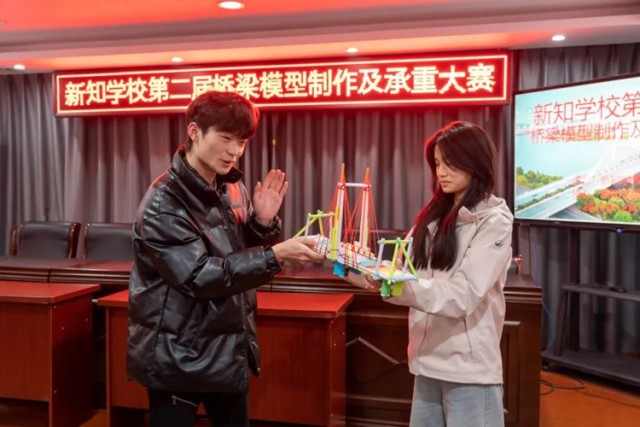此次纸桥大赛不仅考验了同学们的工程思维与动手能力,更激发了大家的创新热情。一张张薄纸搭建的不仅是跨越承重挑战的桥梁,更是连接科学与科技、创意与实践的纽带。未来,上饶市私立新知学校将继续秉承创新精神,举办更多富有挑战性和创新性的科创活动,为学子们搭建更多展示才华、锤炼本领的广阔舞台,助力我校科技创新与人才培养事业高质量发展。(图文:上饶市私立新知学校)
