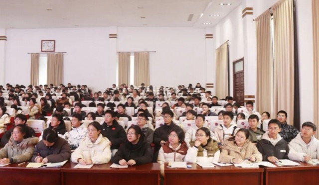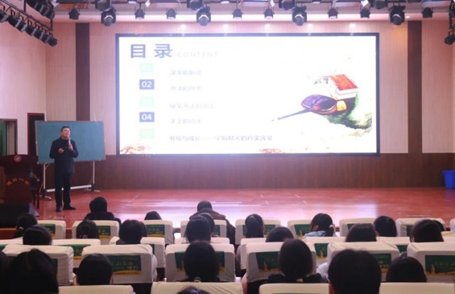 一中负责人李恒华,校党委副书记、校长何文及部分班子成员,高一年级400余名学生到场聆听讲座。