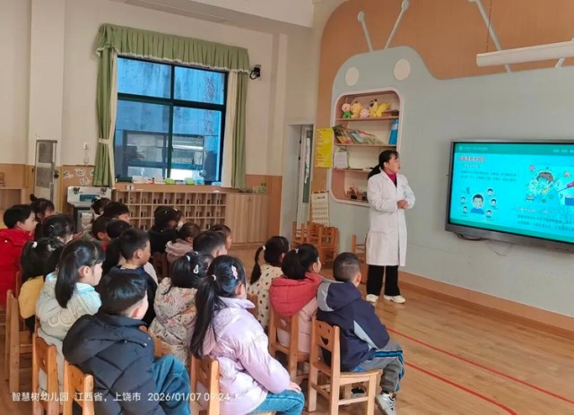 随着冬季气温骤降、昼夜温差加大,各类传染病进入高发期。为切实提升校园师幼的疾病防控意识,筑牢校园健康安全屏障,2026年1月5日-7日,广信区妇幼保健院儿保科医护人员入园开展“冬季常见传染病科普知识”专题讲座。