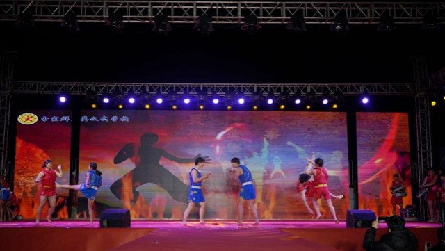 刀术表演率先亮相,表演者手持单刀,在舞台上腾挪跳跃,劈、砍、撩、挂等动作大开大合,势如猛虎下山,刀光闪烁间尽显一往无前的勇武气概,将“刀如猛虎”的磅礴气势演绎得淋漓尽致。