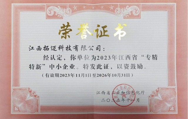 榮獲江西省“專精特新”中小企業、高新技術企業、省級企業技術中心等稱號
