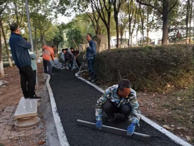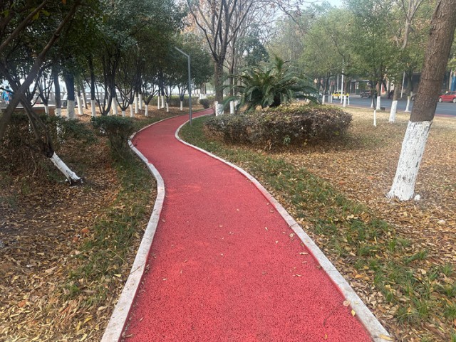 袁水园内原有一段长达484米、宽1.3米的鹅卵石园路,因先天设计地势低洼、排水系统不畅,长期存在“雨天积水、晴天积泥”的问题,给市民散步健身带来极大不便。针对这一民生痛点,市公用事业服务中心精准施策,对该路段实施系统性改造:整体抬高路面路基,将原有鹅卵石面层更换为透水混凝土材质;两侧采用总长约1000米的定制长条状路沿石,既充当路面铺设模板,又有效阻挡两侧泥水漫入路面;同步增设集水井与排水管网,重构排水系统,从根源上解决了园路积水顽疾,保证路面始终干爽洁净。此外,在道路两侧栽种约400平方米麦冬,与周边草地自然衔接,实现了园路功能升级与景观美化的双重提升。