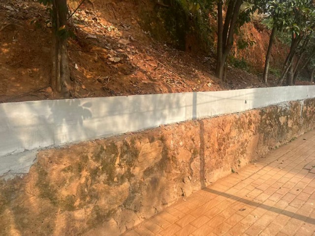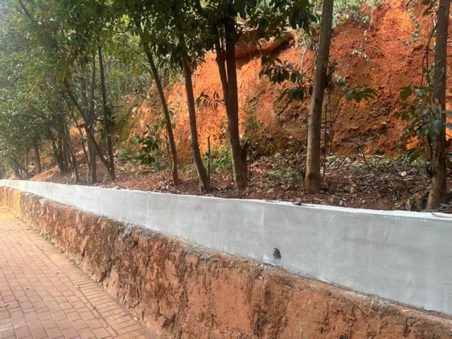安全是公园管理的底线与生命线。为有效预防水塔山公园南侧区域土方滑塌风险,市公用事业服务中心组织专业力量对该区域挡土墙进行加固升级:在原有片石挡土墙基础上,加筑高40厘米、宽40厘米的钢筋混凝土加固层,显著增强了挡墙的整体强度与稳定性,彻底消除了潜在安全隐患,为市民筑牢了安心游憩的绿色安全防线。